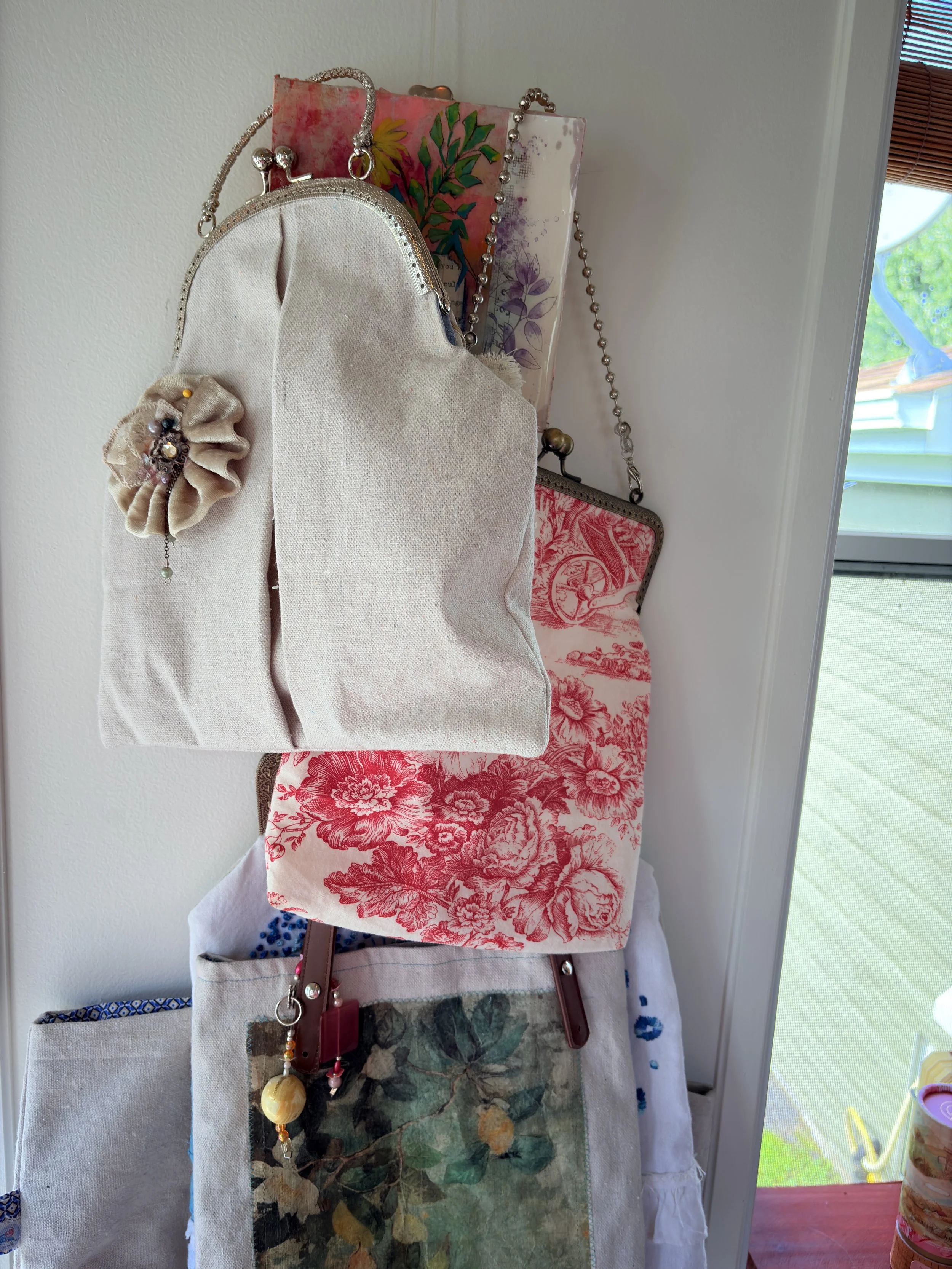 Making Kiss clutch purses (I only recently learned these were called “kiss” clutches) and I love the name …